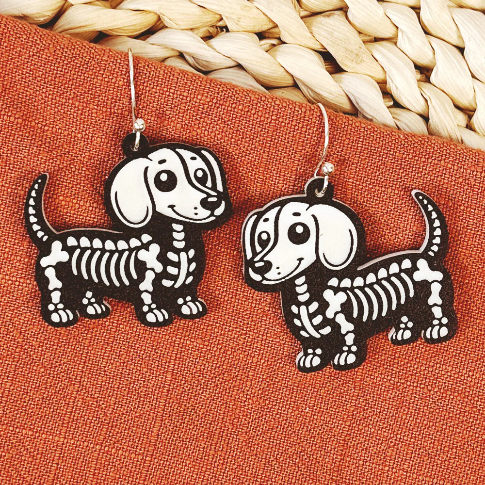 🐾 Dachshund Skeleton Earrings – Spooky-Cute Fall Style for Dog Lovers