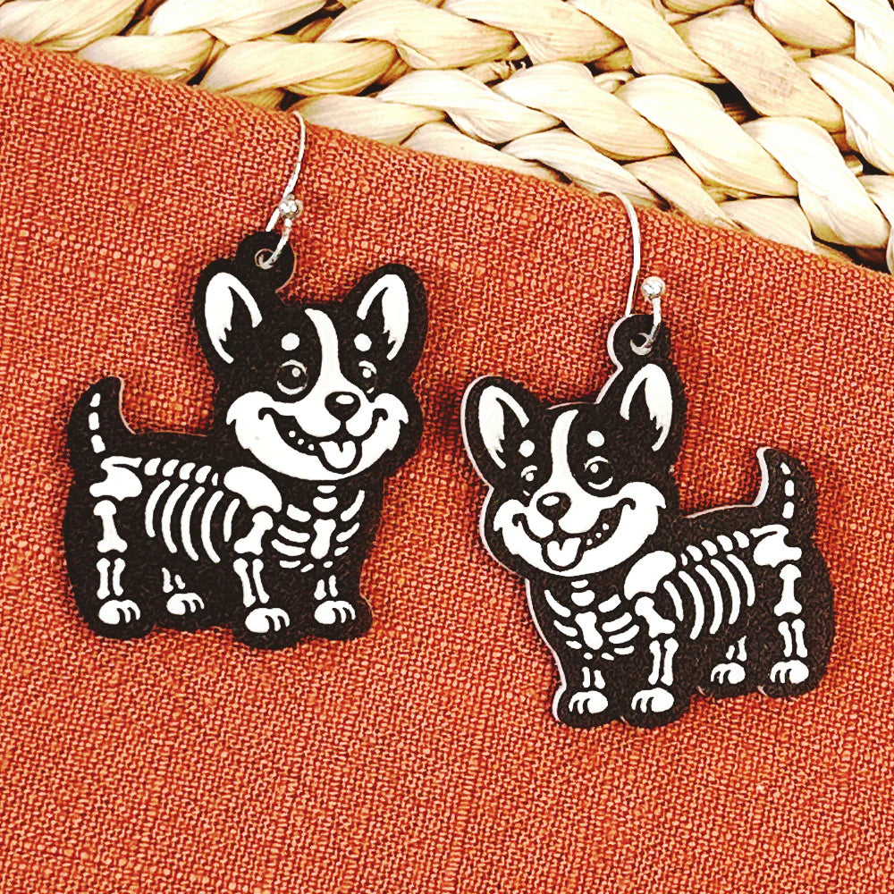 🐾 Corgi Skeleton Earrings – Spooky-Cute Fall Style for Dog Lovers